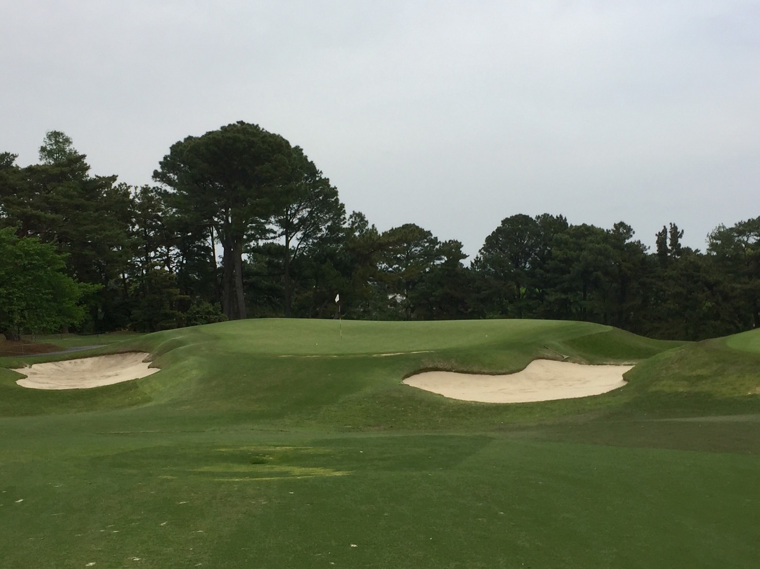 いかにスピンが効いたボールをグリーンに落とすかの戦いになるコースです。