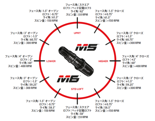 スライス、右に行くショットを軽減したい人、弾道を高くしたい人はロフトを+、あるいはドロー、HIGHERに調整します。
