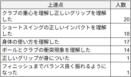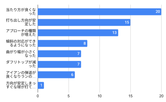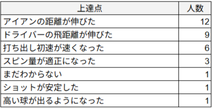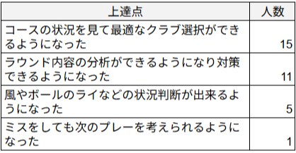 ショットやアプローチなど、どの点が上達したのかをご参考下さい。
